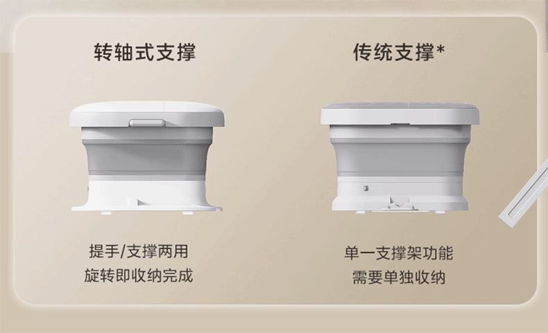 自研轉(zhuǎn)軸式支撐結(jié)構(gòu),提手/支撐二合一,15CM輕巧折疊機(jī)身;
