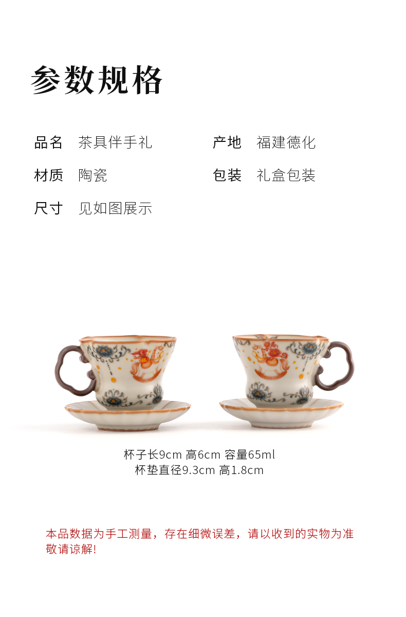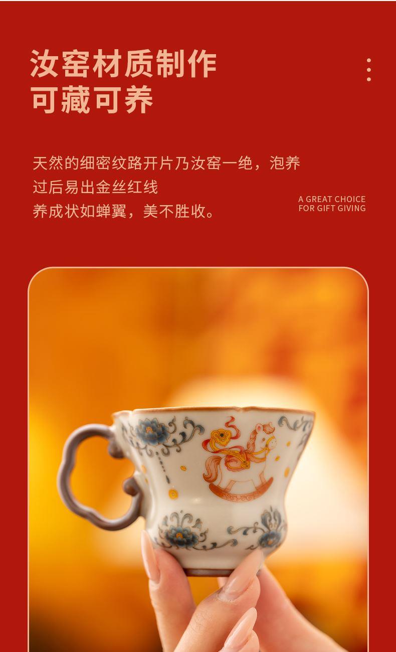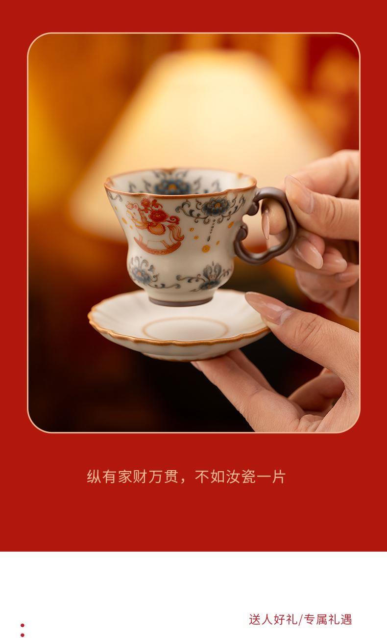 配 制:2杯 2碟 1禮盒 手提袋 材質(zhì):汝黃瓷 規(guī)格:杯子 6*9cm 碟子直徑9.3cm高1.8cm 容量:70ml 推薦說明:馬年開門紅禮品,馬上有錢,馬到成功杯子擺件套裝。亞黃汝瓷,瑪瑙入釉,蟬翼開片,家有千財(cái)萬貫,不如汝窯一片。技術(shù)新品。畫面堆料技術(shù),富有立體浮雕質(zhì)感,真實(shí)感強(qiáng)。杯身開片,可養(yǎng)瓷。