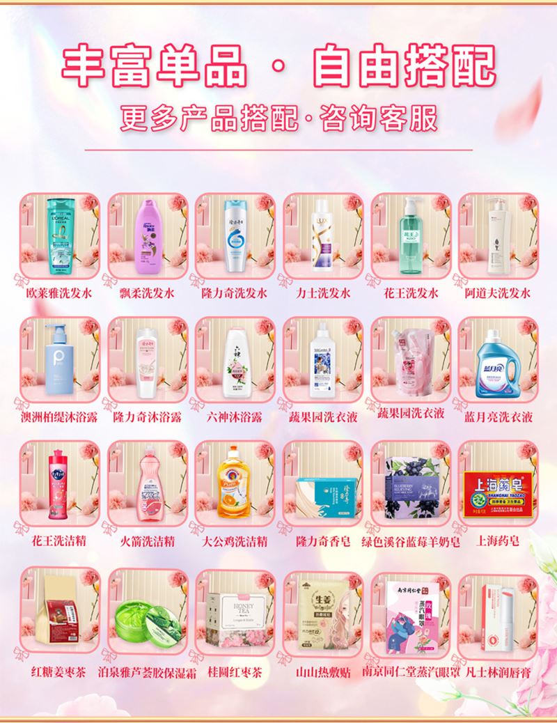 禮盒尺寸:32*8.5*24.5cm 包裝尺寸:66* 46.5*51 CM 產(chǎn)品配置:(香型隨機(jī)) 半畝花田洗發(fā)水500ml 半畝花田沐浴露500ml 高露潔牙膏90g 高露潔三重深潔牙刷 蔬果園洗衣液1kg 潔麗雅毛巾69*33cm 洗漱杯 沐浴球 精美禮盒