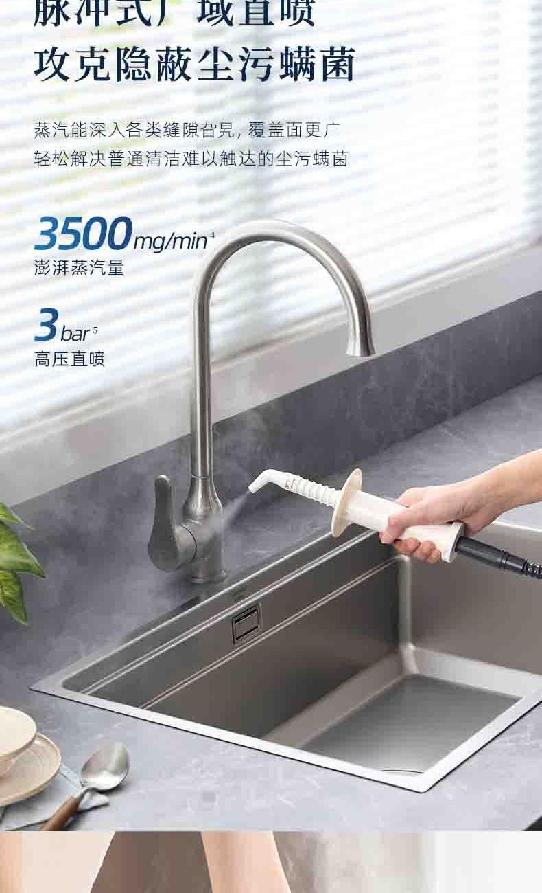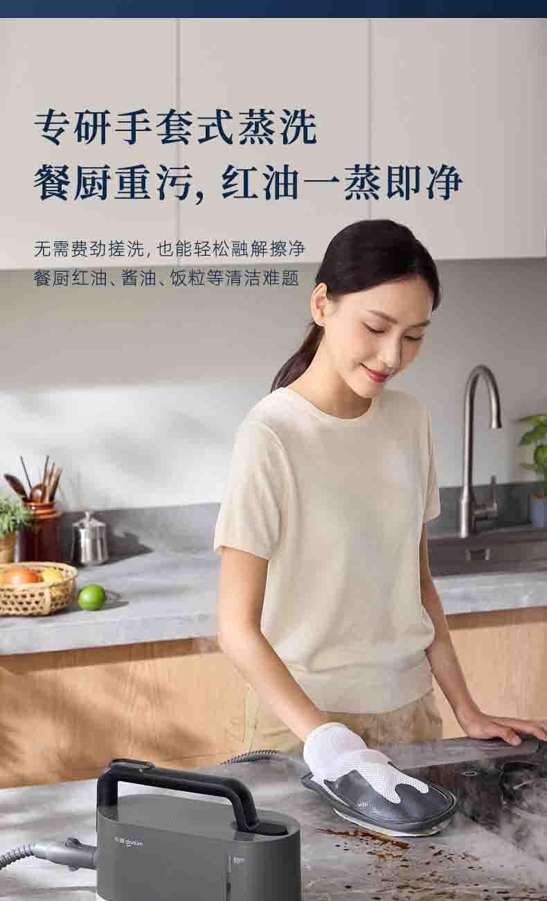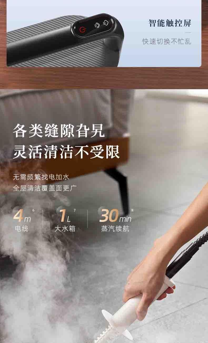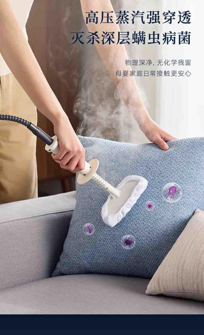 20秒140℃蒸汽3bar高壓直噴,純物理高效融污,除螨菌無殘留 澎湃大流量,持續(xù)高壓滲透,從源頭瓦解陳年污漬 1+7噴刷組件,精 準(zhǔn)觸達(dá)全屋清潔死角 4米電源線+1.3米延長軟管覆蓋每個(gè)角落