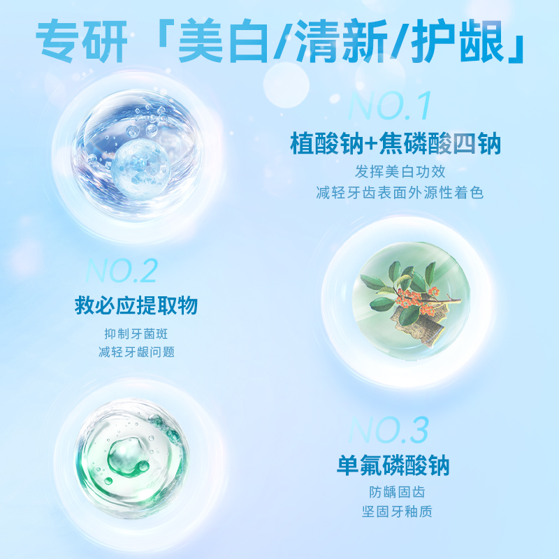 克數(shù):360g*3 保質(zhì)期:3年 1.密集迅白、清口氣、抑制牙菌斑一套多效,細(xì)致呵護 2.發(fā)揮美白功效,減輕牙齒表面外源著色 3.抑制牙菌斑,減輕牙齦問題 4.防蛀固齒,堅固牙釉質(zhì),保持口腔健康