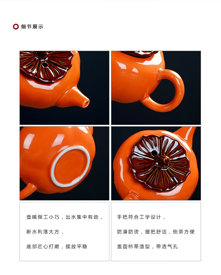 配置:1壺4杯 1彩盒 規(guī)格:壺 15*10*8cm 杯6.5*4.7cm 推薦說明:柿子造型的壺杯,象征事事如意,橘紅喜慶色彩,開門紅伴手禮佳選。