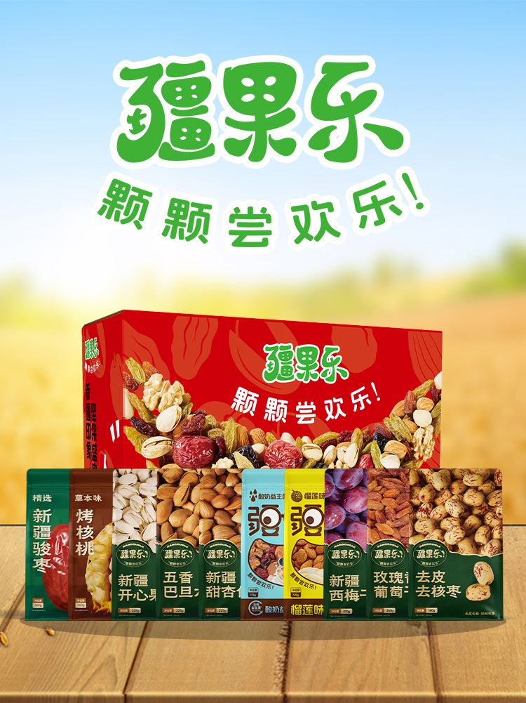 送禮有面 新疆特產(chǎn) 產(chǎn)地直發(fā) 精選新疆駿棗360g*1 草本味烤核桃360g*1 開心果225g*1 五香巴旦木225g*1 甜杏仁225g*1 酸奶益生菌每日?qǐng)?jiān)果175g*1 榴蓮巴旦木仁120g*1 新疆西梅干210g*1 玫瑰香葡萄干260g*1 去皮去核棗160g*1 新疆印象·堅(jiān)果盛宴大號(hào)禮盒*1