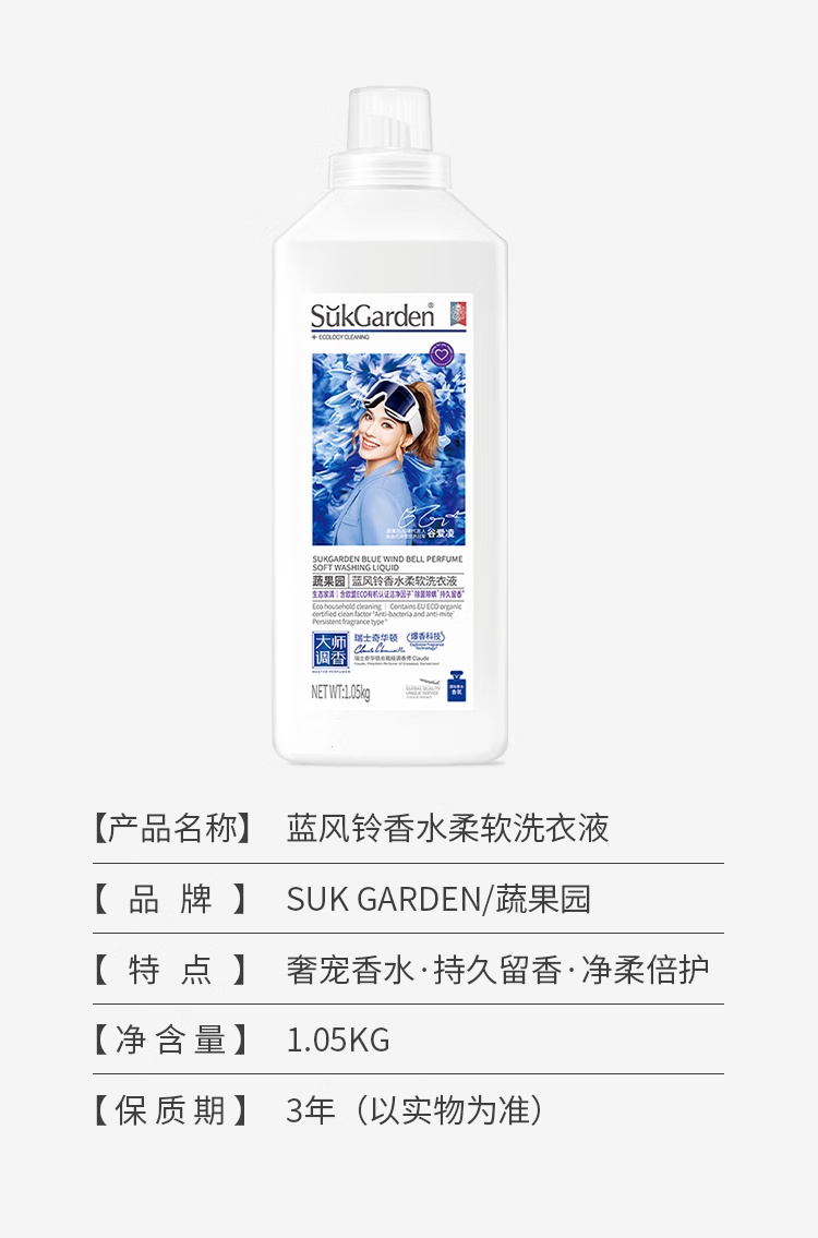 1. SukGarden蔬果園藍風鈴香水柔軟洗衣1050g