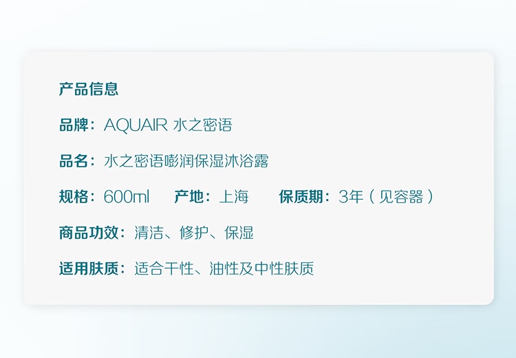 2. 資生堂水之密語(yǔ)嘭潤(rùn)保濕沐浴露600ml