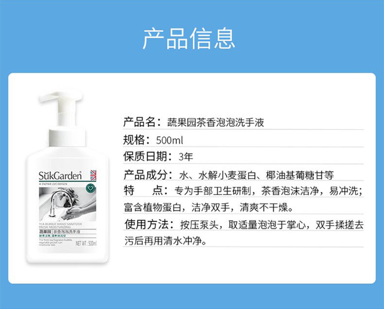 8. SukGarden蔬果園茶香泡泡洗手液500ml