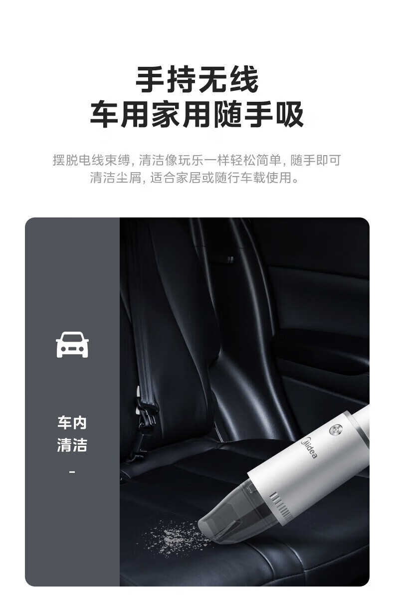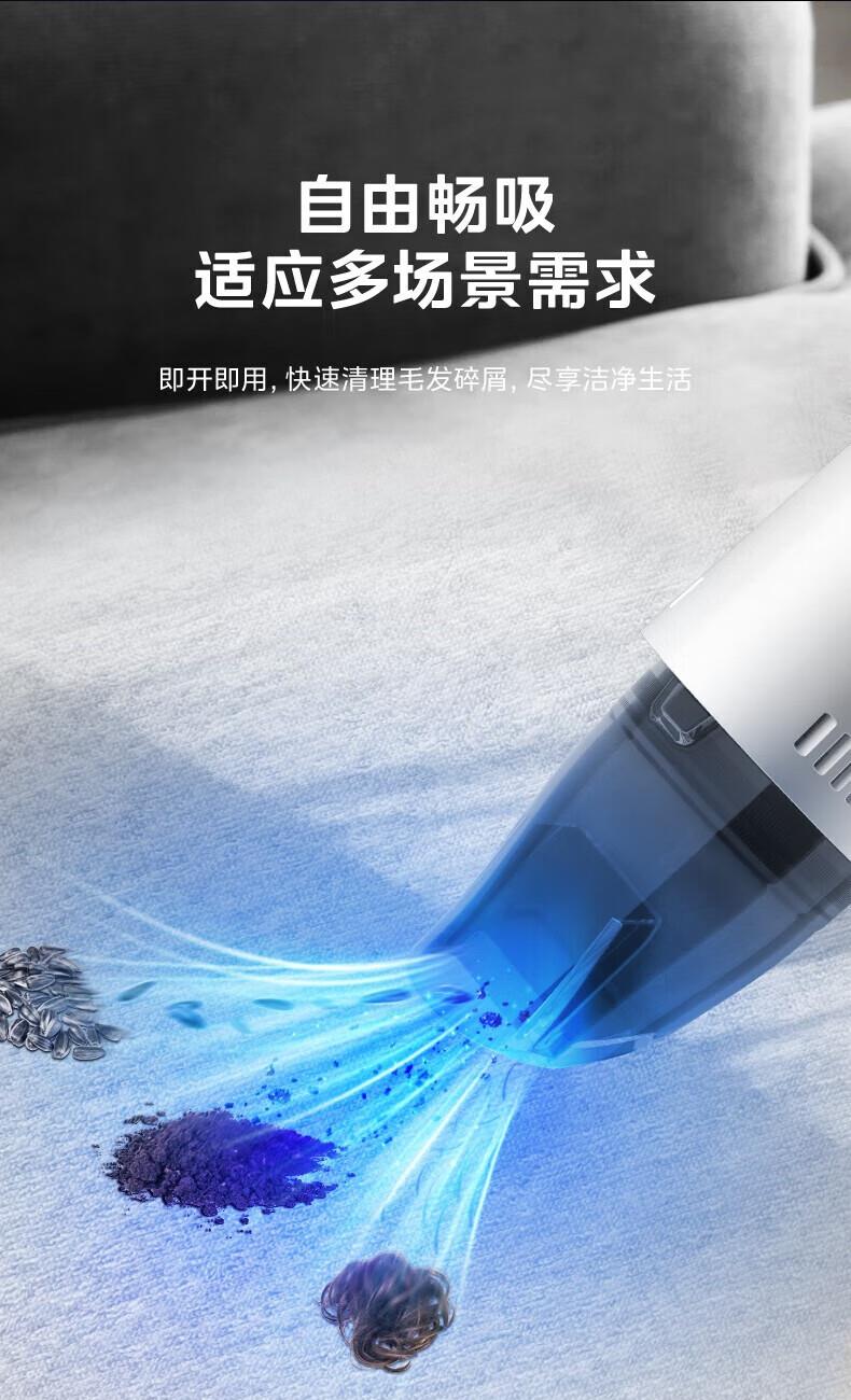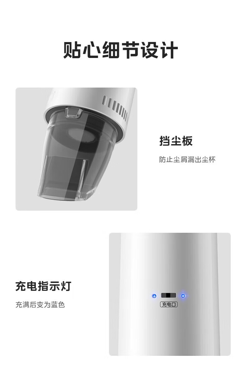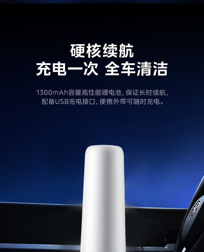 產(chǎn)品規(guī)格: 產(chǎn)品尺寸:280 x 60 x 60 mm 包裝尺寸:314 x 114 x 95 mm 產(chǎn)品毛重:0.42 kg 產(chǎn)品特點: 好看不占地,可放置于車內(nèi)中控臺儲物箱 手持無線車用,家用隨手吸 1300mAh容量高性能鋰電池,保證長時續(xù)航 即開即用,快速清理毛發(fā)碎屑,盡享潔凈生活