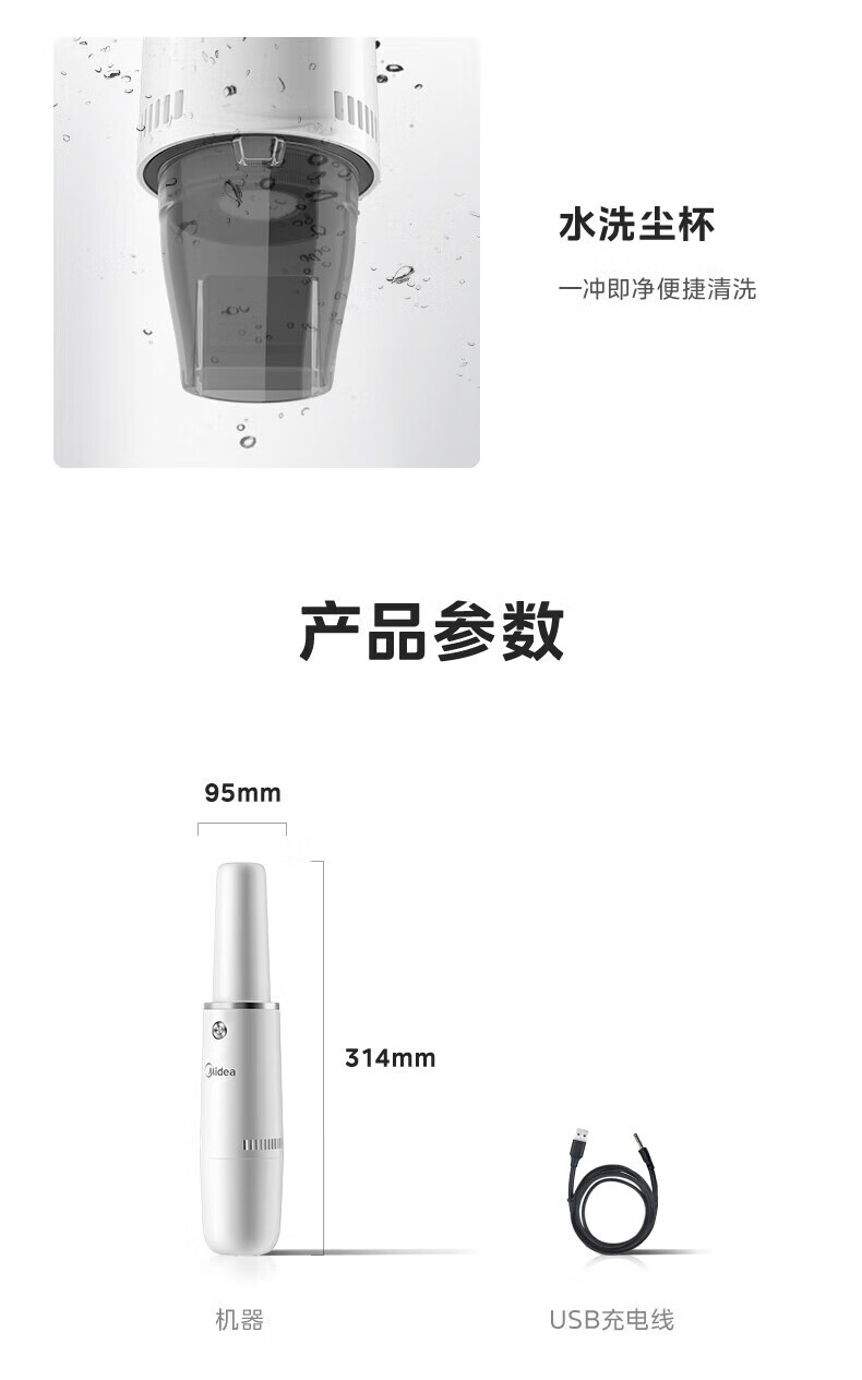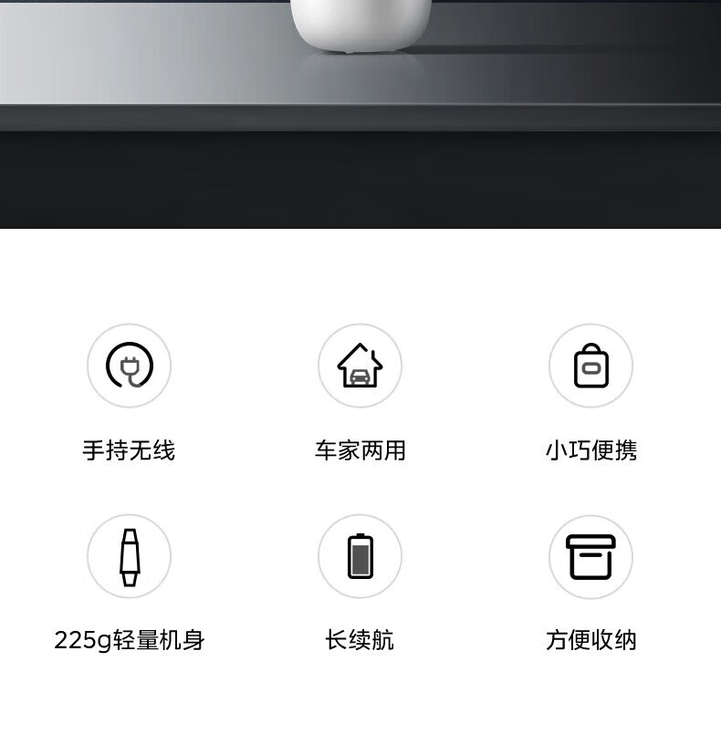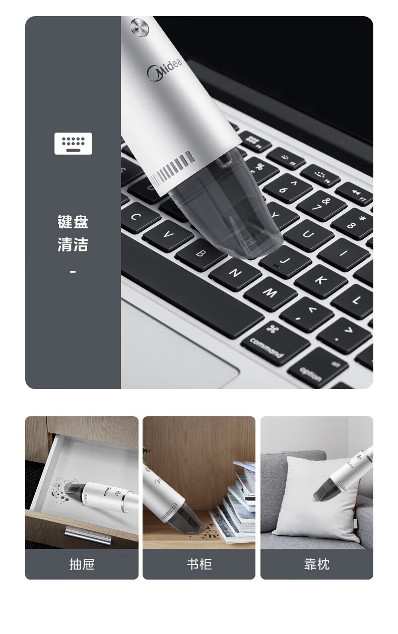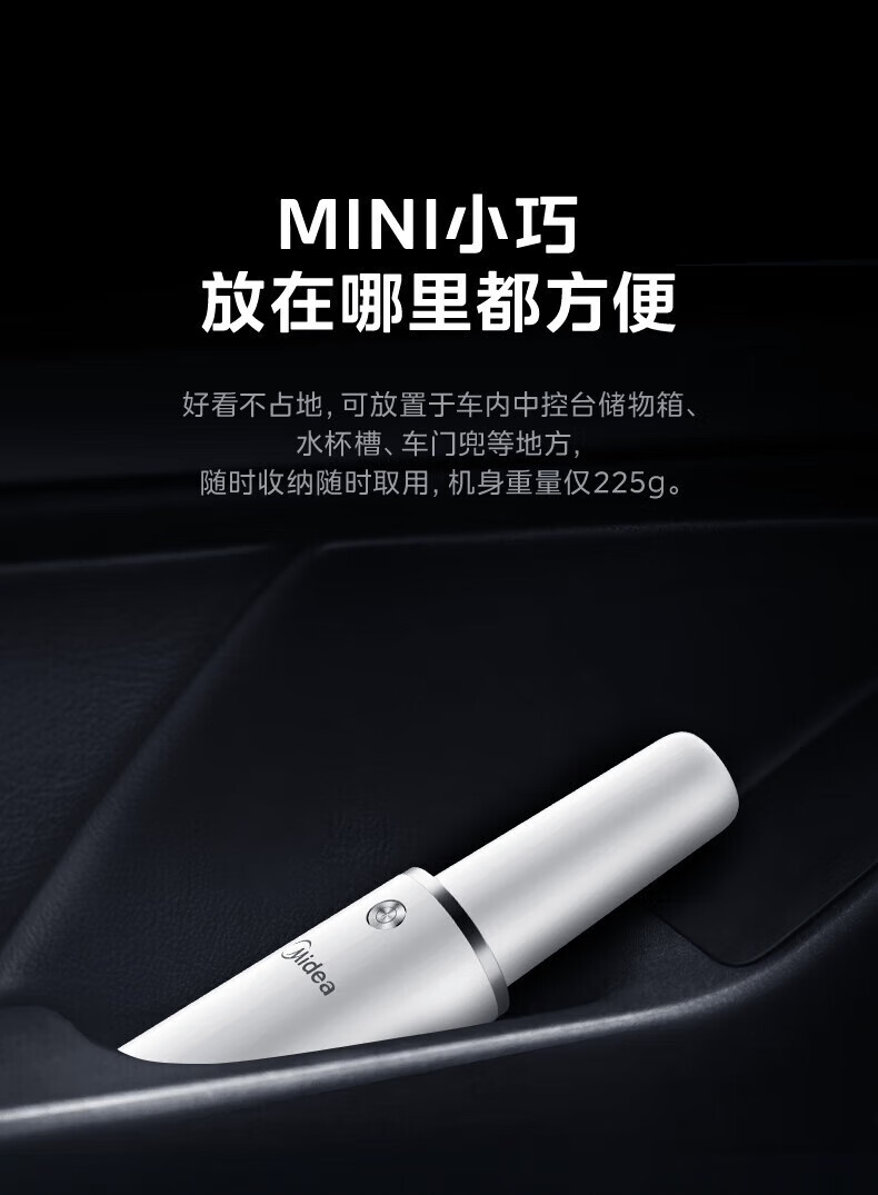 產(chǎn)品規(guī)格: 產(chǎn)品尺寸:280 x 60 x 60 mm 包裝尺寸:314 x 114 x 95 mm 產(chǎn)品毛重:0.42 kg 產(chǎn)品特點: 好看不占地,可放置于車內(nèi)中控臺儲物箱 手持無線車用,家用隨手吸 1300mAh容量高性能鋰電池,保證長時續(xù)航 即開即用,快速清理毛發(fā)碎屑,盡享潔凈生活